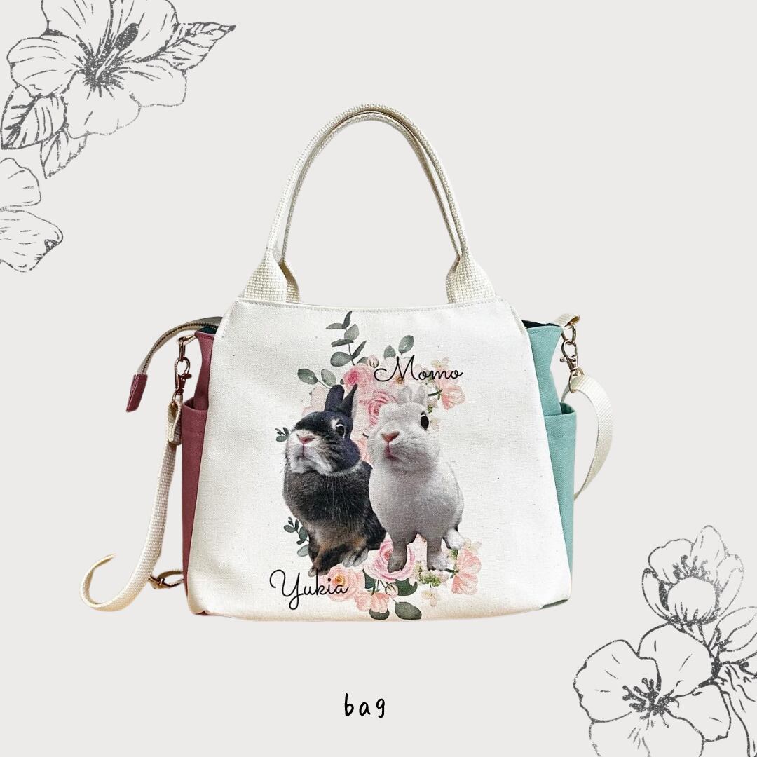ペットの写真でお作りする、うちのこ3色ショルダーです。